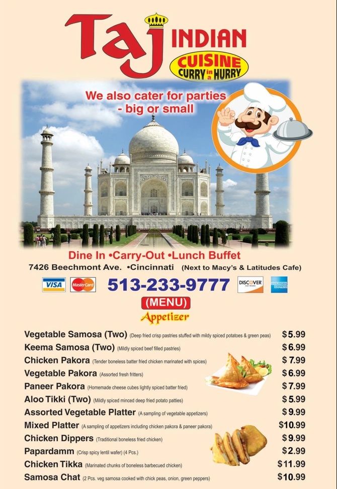 Located in 7426 Beechmont Avenue, Cincinnati, TAJ INDIAN CUISINE is the perfect place to enjoy a meal with family and friends. Our restaurant is warm and inviting, with a rustic charm that will transport you to another time and place. With ample parking and easy access to public transportation, getting here is a breeze.